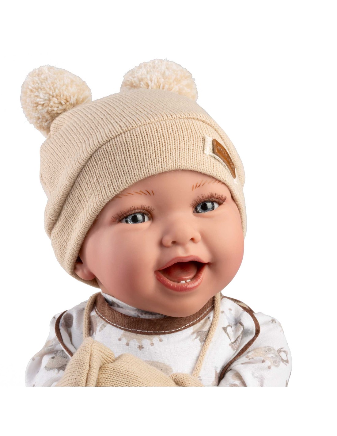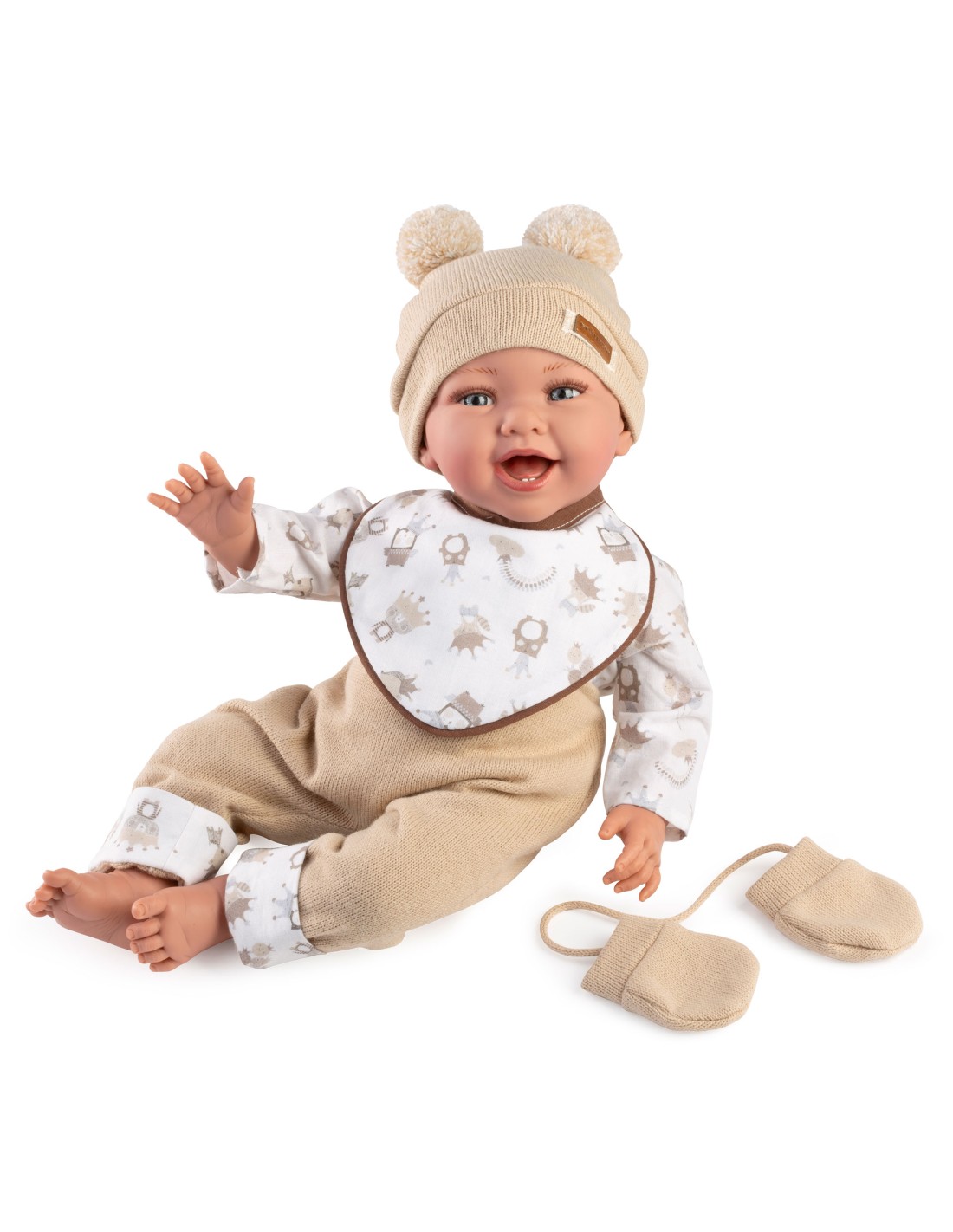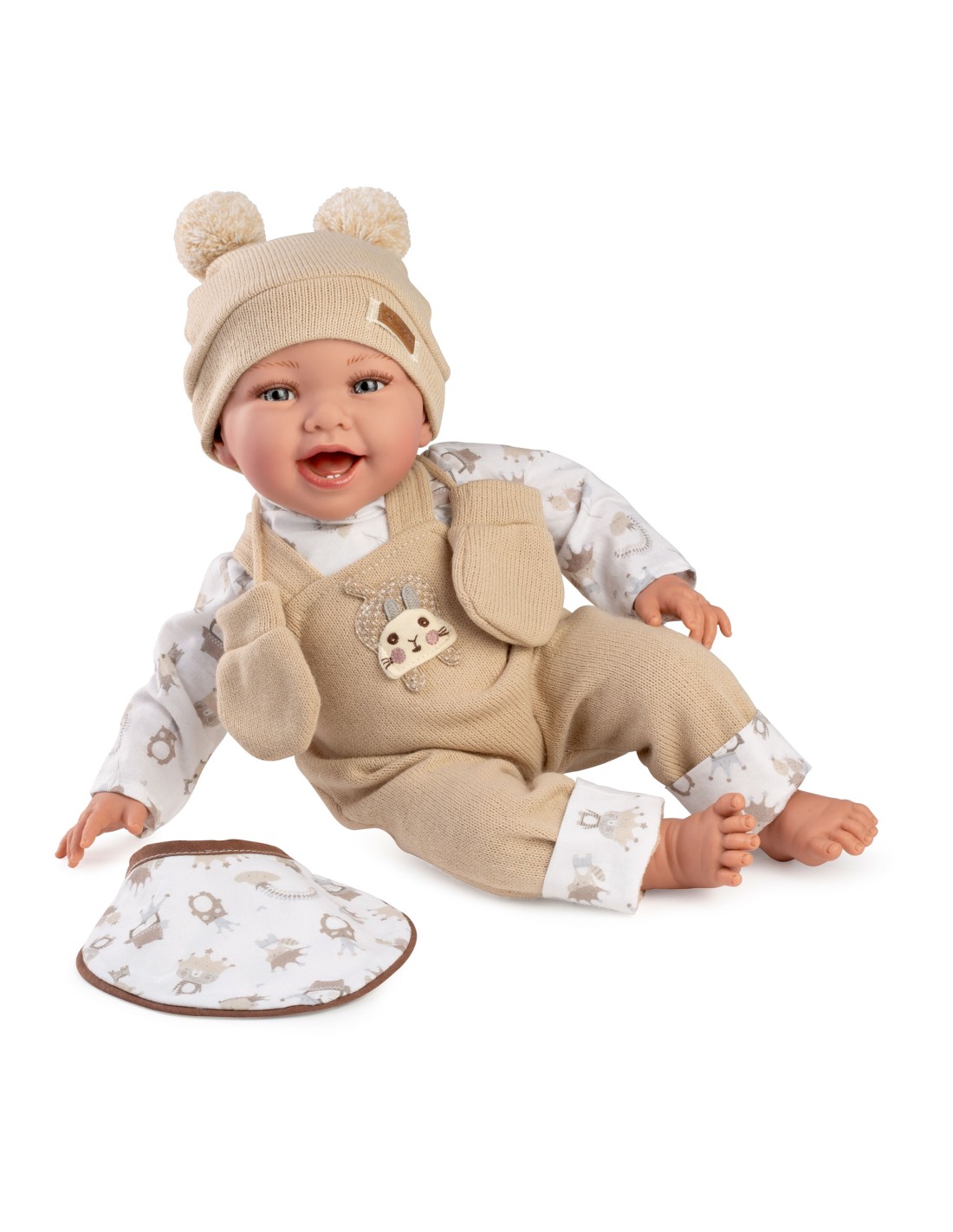 Muñeca Classic Oliver 42cm - peto beig con camiseta, gorro, babero y manoplas