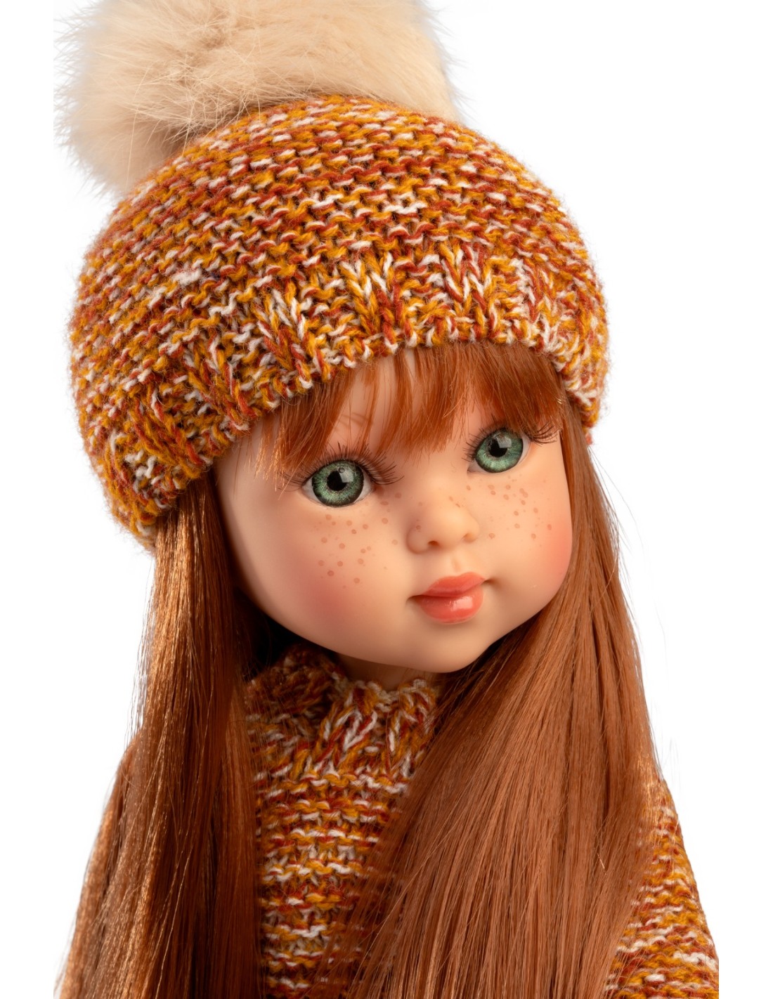 Muñeca Penelope Copenhague – Pelo largo pelirrojo. Jersey y gorro de lana, leggins y botas. 33 cm