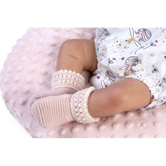 Su cuerpo de tela mullida transmite esa sensación de cargar a un recién nacido, mientras que sus extremidades de vinilo brindan un tacto suave y auténtico. El sutil “efecto cabeza caída” refuerza su naturalidad y realismo.
