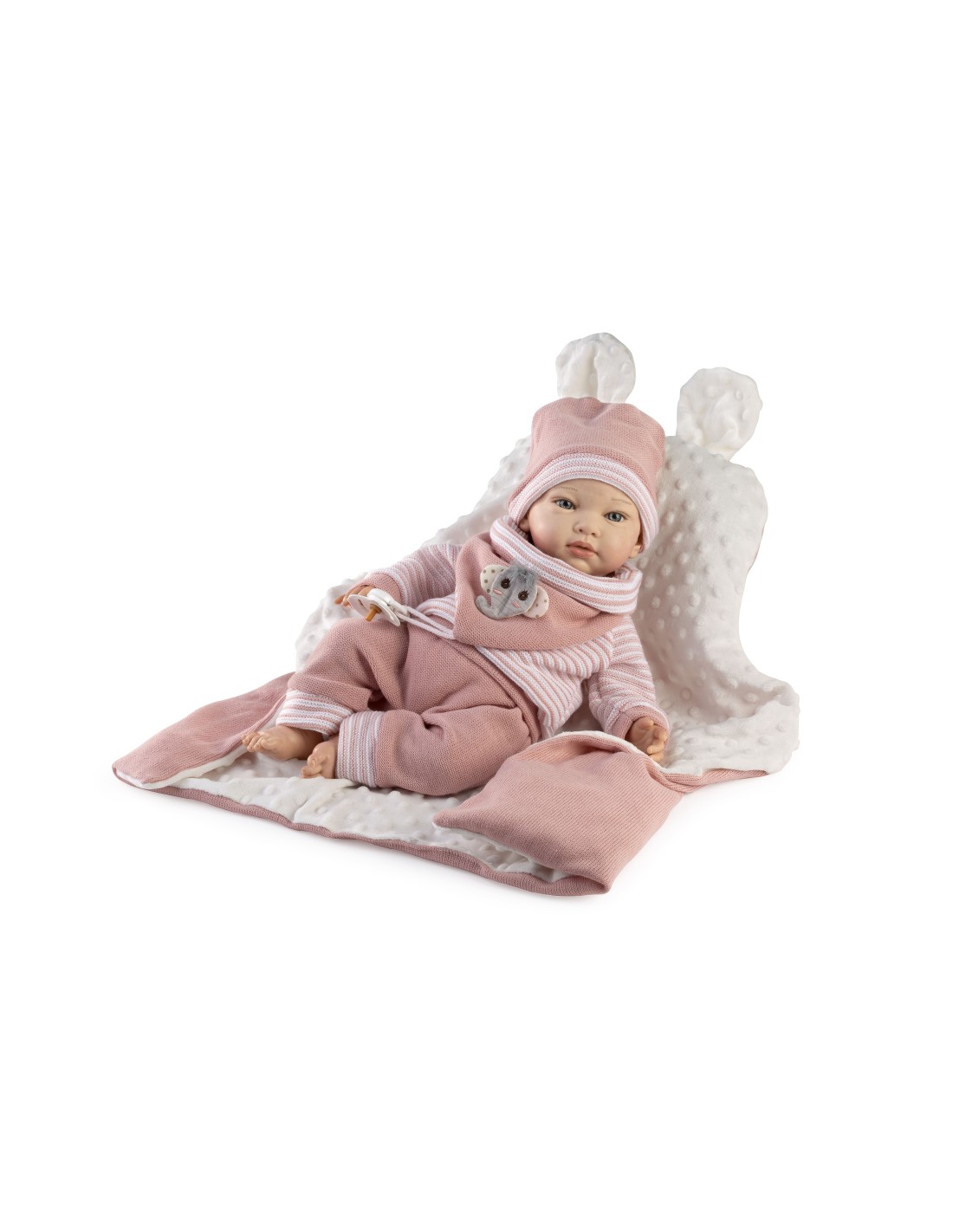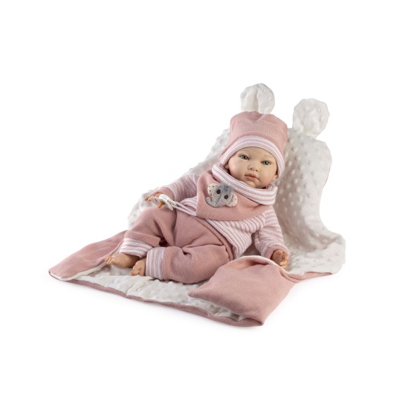 Reborn Valeria – Con jersey, babero y mantita rosa 42 cm