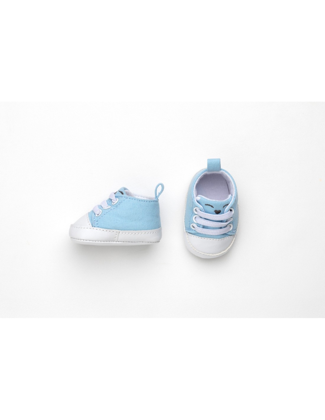 Zapatillas azul y blanca con cordones.